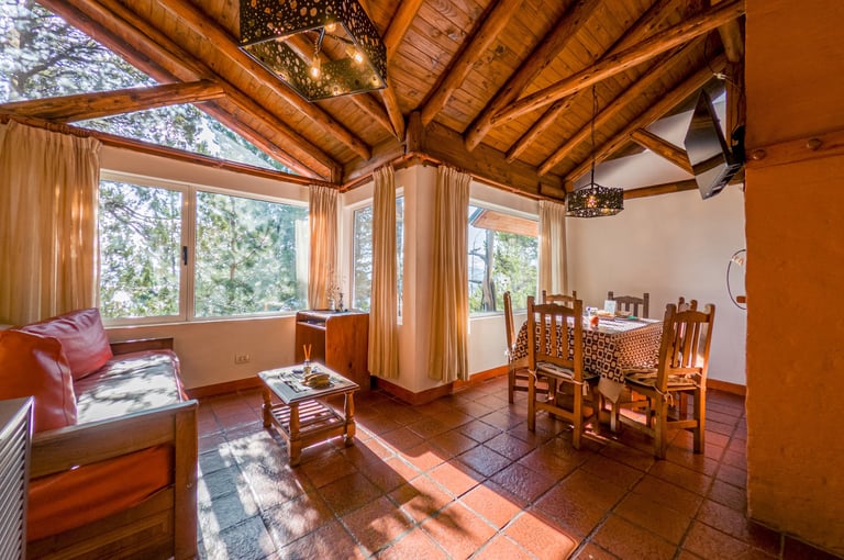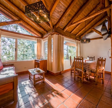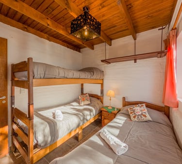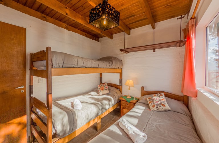 Planta Inferior: 2 habitaciones, una es con cama doble para 2 personas, y la otra habitación 3 camas ( 1 de ella es una litera/cucheta para 2 personas, y la otra es una cama individual); lavadero, 1 baño, y terraza-deck, todo con vista al lago Nahuel Huapi.