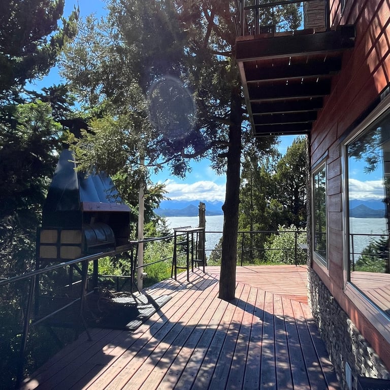Deck con vista al lago Nahuel Huapi, y parrilla particular.
